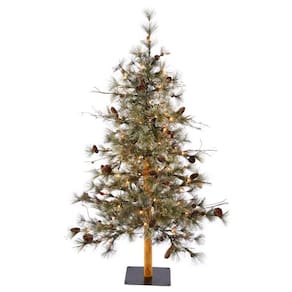 Vickerman Árvore de Natal artificial Dakota Alpine de 1,5 m, luzes LED brancas quentes com luz dura – Árvore de Natal alpino sintético – Decoração de casa sazonal – Baú de madeira real
