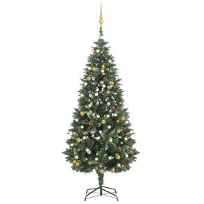 Esta linda árvore de Natal artificial é muito realista em sua forma e aparência e criará a atmosfera certa para o próximo Natal. Imitando um pinheiro, esta árvore de Natal tem galhos pontiagudos realistas com glitter branco nas pontas dos galhos, o que a torna extremamente densa. Esta linda árvore de Natal é leve e durável. Os galhos das agulhas e as pinhas naturais incluídos podem ser dispostos em qualquer formato. Esta árvore de Natal pode ser usada todos os anos, o que a torna uma escolha muito econômica em comparação com uma árvore real. Ele também tem uma base de ferro para estabilidade. Com luzes LED energeticamente eficientes, acende-se lindamente e cria uma atmosfera acolhedora de férias. Além disso, decorada com lindos picos e bolas, esta árvore de Natal chamará a atenção em sua casa. Divirta-se durante as férias com esta linda árvore de Natal! Nota: O produto tem um conector USB, mas a fonte de alimentação USB certificada de 5V não está incluída.Cor da árvore: verde e brancoCor da bola: ouro brilhante, ouro fosco e bronzeMaterial: PVC, ferro, plásticoAltura da árvore: 180 cmDiâmetro máximo da árvore: 104 cmComprimento da luz LED: 15 mVoltagem: DC 5 V Potência: 5 W Diâmetro do suporte: 45 cm Tamanho do galho: 18 x 7,6 cm (L x W)) Com 720 pontas pontiagudas Com 150 LEDs com conexão USB Com glitter branco nas pontas dos galhos Imitando um pinheiro Decorado com 28 pinhas A entrega contém: 1 x árvore de Natal 1 x suporte 1 x luz de corda LED 1 x pico 20 x 3 cm bola 21 x bola de 4 cm, bola de 20 x 6 cm