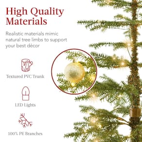 Especificações: Dimensões gerais: 42" (diâmetro) x 72" (A) (incluindo suporte) Peso do produto: 13,6 libras. Contagem de luz: 200 LED multicolorido 2 em 1 Dicas de ramificação: 880 Tempo aproximado de penugem: 30-45 minutos Material: PE, montagem de metal necessária (com instruções) O pacote inclui: Suporte artificial de metal para árvore de Natal somente para uso residencial SKU BCP: SKY6670 - APARÊNCIA REALISTA: dezenas de galhos largos e planos imitam a folhagem de árvores confinadas esparsas, enquanto um tronco de PVC marrom completa o natural, atraente aparência - Design de alta qualidade: feito com dobradiças de metal duráveis e galhos de PE retardadores de chamas que se erguem com a ajuda de uma base de metal resistente, para que você possa aproveitar sua árvore nas próximas festas de fim de ano! - FÁCIL MONTAGEM E CONEXÃO DE LUZ SEM FIO: Uma montagem simples de 3 etapas é facilitada por um sistema de luz instantânea sem fio - basta empilhar as seções da árvore, afofar e conectar a base para obter uma tela deslumbrante; tempos aproximados de afofamento (4,5 pés/6 pés/7,5 pés/9 pés): 15-30 minutos/30-45 minutos/45-60 minutos/60-90 minutos - MUITAS MANEIRAS DE DECORAR: Os galhos rígidos e resistentes combinados com o design aberto criam o espaço perfeito para exibir seus melhores ornamentos, guirlandas, enfeites ou decoração de bricolage; pontas dos galhos (4,5 pés/6 pés/7,5 pés/9 pés): 522/880/1.240/2.494 - 9 FUNÇÕES DE LUZ: Use o pedal para alternar entre 9 sequências de luz à medida que centenas de luzes LED brancas quentes e multicoloridas 2 em 1 ganham vida e dão um toque dinâmico às férias; a luz conta (4,5 pés/6 pés/7,5 pés/9 pés): 100/200/300/400; DIMENSÕES GERAIS: 42" (diâmetro) x 72" (A)