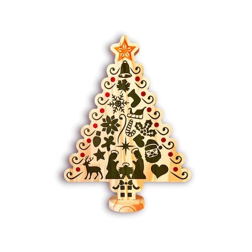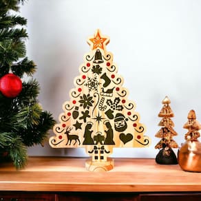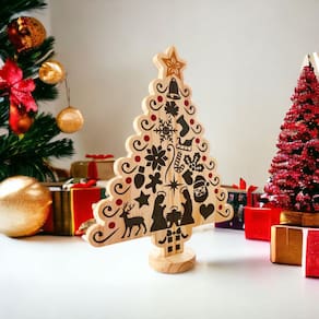 Confeccionada em madeira de pinus, essa árvore possui detalhes impressos em alta definição, que adicionam um toque de magia à sua decoração natalina. Com um design encantador, ela é perfeita para criar um ambiente acolhedor e festivo.