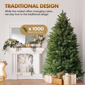 - ÁRVORE DE ABETO CLÁSSICA: 6 pés de altura, 40 polegadas de diâmetro de base. Com 1000 pontas de galhos para um realismo notável, esta árvore de natal pode ser facilmente afofada e moldada para uma exibição esplêndida, oferecendo mais espaço para mostrar seus enfeites