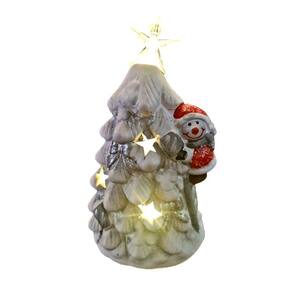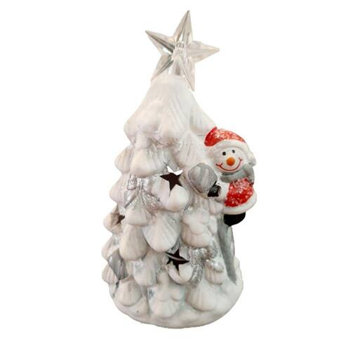 Enfeite Natalino de Mesa Árvore de Natal Acende 2 Leds com Ponteira de Estrela e Boneco de Neve Subindo pela Escada na Árvore