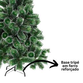 Seu acabamento verde com efeito nevado luxo traz o charme e a delicadeza da neve, criando um clima natalino aconchegante. Possui sistema de abertura fácil com galhos padronizados, o que facilita a montagem e garante um encaixe prático. A base em tripé de ferro reforçado oferece estabilidade e durabilidade, mantendo a árvore firme em qualquer ambiente.