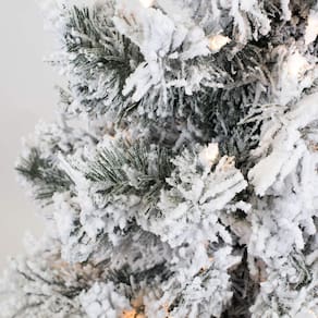 - Flocado – Esta árvore vem muito flocada. Reminiscente de uma nova queda de neve.