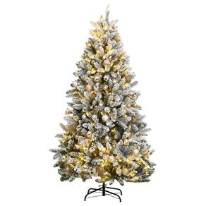 Vem com lindas decorações natalinas, esta árvore de Natal com dobradiças artificiais com LEDs chamará a atenção à noite e criará a atmosfera certa para este Natal. Construção articulada: a árvore de Natal tem uma construção articulada, de modo que os galhos se dobram automaticamente no ângulo reto. Isso tornará muito mais fácil colocar a árvore em um ótimo estado e também economizará seu tempo.8 modos de iluminação: a luz LED de corda tem 8 efeitos de iluminação diferentes (combinação, em onda, sequencial, brilho lento, perseguição/água corrente, desvanecimento lento, cintilação/flash e constante). Você pode alternar os modos de iluminação pressionando o botão no USB para criar diferentes atmosferas de férias.Bela decoração: a moderna árvore de Natal é decorada com neve branca artificial, criando uma aparência atraente. Essas bolas de Natal brilhantes estão disponíveis em três tamanhos diferentes, o que traz mais possibilidades para sua decoração de bricolage. Suporte robusto: o suporte de metal fornece à sua árvore de Natal ótima robustez e estabilidade. Escolha econômica: você pode reutilizar o enfeite natalino todos os anos, o que é uma opção econômica em comparação com comprar uma árvore real. É bom saber: recomendamos reservar 45 a 60 minutos após a montagem para moldar adequadamente a árvore, descascando os galhos e separando as pontas para dar aos galhos uma aparência mais encorpada. O produto tem um conector USB que requer uma fonte de alimentação USB certificada de 5 V (não incluída). Certifique-se de que a conexão USB esteja conectada em um ambiente seco. Árvore de Natal: Cor: verde e brancoMaterial: PVC (cloreto de polivinil)), metal Altura total: 82,7" Diâmetro inferior: 41,7" Tamanho do suporte: 17,7" x 5,9" (L x A) Construção articulada com 1259 pontas de PVC decoradas com flocado neve