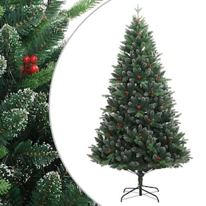 -?Bagas decorativas?: Adornada com frutas vermelhas, esta árvore de Natal com dobradiças da vidaXL adiciona um toque encantador à sua decoração de Natal, proporcionando uma linda aparência natural