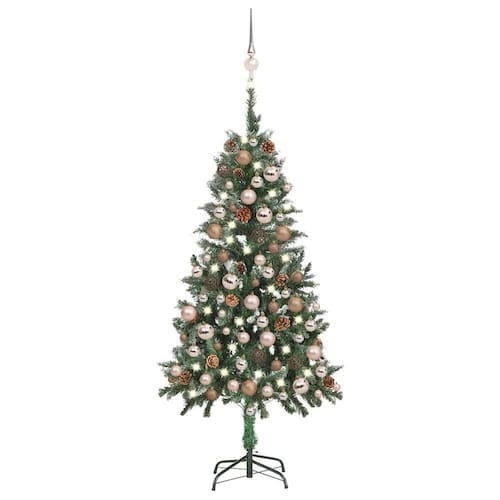 - ?Decoração completa?: Inclui árvore verde e branca de 150 cm, suporte de ferro, 18 pinhas, cordão de luz LED, pico de árvore e 61 bolas de ouro rosa em vários tamanhos, garantindo uma configuração totalmente festiva