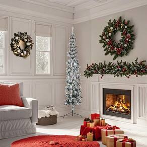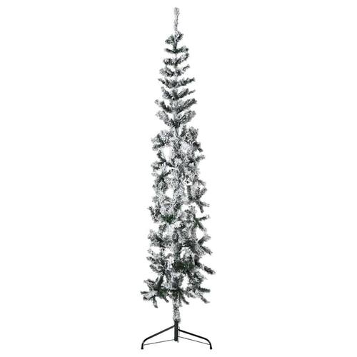 Esta meia árvore de Natal artificial com neve branca em flocos é a escolha ideal para qualquer espaço que precise de um toque de alegria natalina.