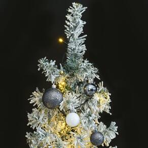 - Decorações festivas: vem com bolas de Natal brilhantes em três tamanhos diferentes e neve flocada para tornar sua árvore atraente