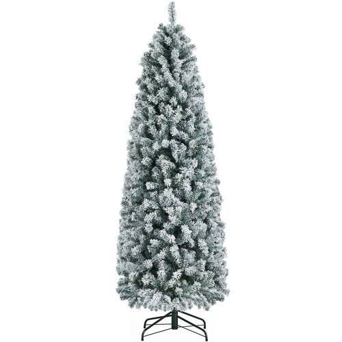 ESPECIFICAÇÃO: Materiais: PVC, ferro Cor: branco Categorias: lápis flocado apagado Árvore de Natal artificial Contagem total de pontas: 814 Dimensão geral: 29,5 × 82,5” (diâmetro. × H) Dimensão do suporte: 20 × 5,5” (diâmetro. ×H) G.W.: 21,7 lb; N.W.: 16,6 lb Nota: Por favor, permita erros de ±1,2" devido à medição manual. - Materiais selecionados: todos os galhos e pontas desta árvore de Natal coberta de neve são feitos de PVC de qualidade. O suporte e o poste do tronco da árvore são feitos de ferro resistente. Galhos e folhas de PVC premium são duráveis, flexíveis e parecem super reais. Um suporte de base amplo e dobrável garante grande estabilidade e capacidade de carga para ficar parada. Ultrarrealista: esta árvore de Natal artificial vem com folhas exuberantes e fofas cobertas de neve flocada, exibindo uma árvore de Natal festiva e realista que destaca sua sala de estar em um minuto. Muitos galhos e pontas dão uma aparência de corpo inteiro, o que torna esta árvore de Natal flocada espessa e pesada - Durável para uso repetido: nossas árvores de Natal artificiais são feitas de plástico resistente, PVC durável e ferro resistente, o que garante que a árvore seja durável o suficiente para uso prolongado e repetido a cada inverno. Esta árvore artificial será uma boa solução para economizar dinheiro e uma opção única em cada festival - Configuração fácil: todo o hardware e ferramentas úteis necessários são fornecidos na embalagem com um manual de instruções bem ilustrado. As habilidades mínimas necessárias para montar esta árvore de Natal a lápis - sem bricolage: esta árvore de Natal flocada não inclui luzes e outros enfeites decorativos. Deixamos a alegria de escolher o estilo desejado de decoração e ornamentos com você, você também terá a felicidade de transformá-lo em uma peça mágica e deslumbrante com sua família e amigos