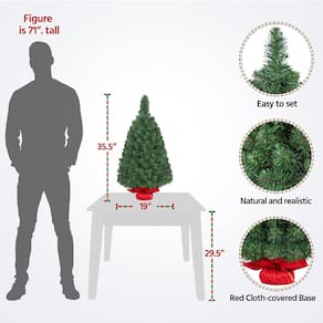 Yaheetech Mini árvore de Natal artificial de mesa de 91 cm, inclui base de saco de pano para quarto, mesa, varanda, pequena árvore de Natal para decoração de férias e escritório em casa - Mini e leve: o tamanho compacto e o design leve desta árvore de Natal de mesa a tornam facilmente portátil e versátil. Pode ser facilmente movida e armazenada, ocupando o mínimo de espaço. A mini árvore de Natal artificial pode ser colocada em qualquer lugar para criar um destaque atraente - Base de saco de pano vermelho estável: uma base de cimento resistente e estável envolta em um saco de pano vermelho evita que a mini árvore de Natal tombe e mantém um equilíbrio perfeito. A bolsa de tecido vermelha adiciona mais atmosfera festiva e causa uma excelente impressão decorativa - Materiais de alta qualidade: os ramos e pontas desta árvore de Natal de mesa são feitos de PVC premium, que não cai como folhas reais e é durável para durar. As folhas de PVC dão um acabamento natural de folhas, garantindo que esta mini árvore de Natal pareça realista e realista de perto e de longe. Nossa árvore de Natal de PVC é resistente ao fogo e anticolapso - Fácil de montar e armazenar: nossa árvore de Natal de mesa requer o mínimo de esforço para montar. Afofar as pontas dos galhos é tudo o que você tem a ver com isso. Sugerimos usar luvas ao montar as pontas, pois elas podem ser um pouco arranhadas como um abeto de verdade - Várias opções de decoração: nossa árvore de Natal pode ser personalizada com guirlandas, luzes, sinos e outros ornamentos de acordo com suas preferências. Você também pode estender o uso das férias para a vida diária trocando diferentes pingentes para combinar com vários eventos e atmosferas