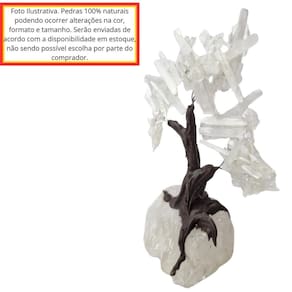 Feita com cristais de selênio ou selenita, e projetada para representar uma árvore, com seus galhos e raízes esculpidos. A seleniota, ou selenita, é uma variação do mineral gesso e é muito conhecida por suas propriedades energéticas e espirituais, além de ser uma das pedras mais puras e eficazes em práticas de cura.