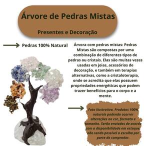 Árvore de Pedras Mistas Presente e Decoração árvore de Pedras Mistas Presente e Decoração Transforme qualquer ambiente com a elegância e a energia positiva da Árvore de Pedras Mistas Esta peça única de decoração combina a beleza das pedras naturais com o simbolismo das árvores, proporcionando uma decoração encantadora e ao mesmo tempo cheia de significados profundos. - serão enviadas de acordo com a disponibilidade em , não sendo possível escolha por parte do comprador. Benefícios das Pedras: Cada pedra possui propriedades curativas únicas, como equilíbrio, proteção e energias positivas. Estimula o bem-estar e a harmonia no ambiente em que é colocada. O design da árvore simboliza crescimento, prosperidade e renovação. Ideal para presentear alguém especial ou para complementar a decoração da sua casa ou escritório, essa árvore de pedras mistas traz um toque sofisticado e energizante. Perfeita para mesas, prateleiras ou como ponto focal em qualquer espaço. Características: Pedras Mistas Naturais, cada uma com propriedades e cores distintas Design único de árvore, com base sólida Peça de decoração com significado espiritual Ideal como presente especial ou para enriquecer a decoração de qualquer ambiente adicione beleza, harmonia e boas energias ao seu espaço ou presenteie alguém querido com esta incrível Árvore de Pedras Mistas. Adquira a sua agora e transforme o ambiente com um toque de natureza e equilíbrio Enviamos a sua escultura em até 24 horas após a confirmação do pagamento Caso tenha alguma dúvida nos mande mensagem que responderemos rapidinho para te ajudar da melhor forma possível Marca: Não Informado