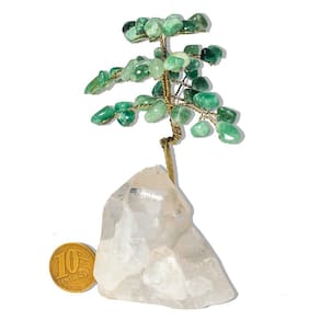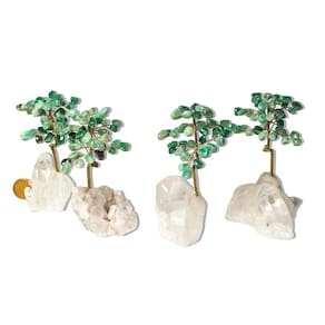Árvores Decorativas artesanais feitas com quartzo verde natural rolado e base de drusa de cristal de garimpo. Cada árvore é produzida manualmente com galhos de arame torcido, acabamento em resina e pedras coladas uma a uma, garantindo um visual único e delicado. Ideal para revenda, lojas de presentes, artesanato ou para quem deseja decorar ambientes com peças diferenciadas feitas com minerais naturais do Brasil. Especificações do Produto: