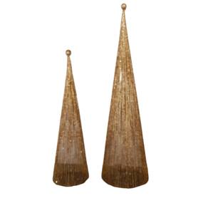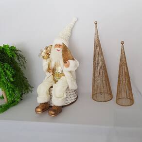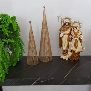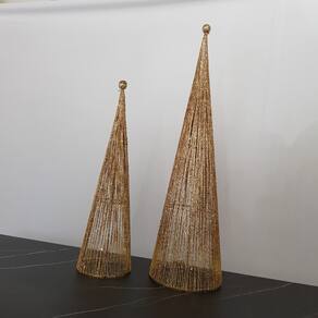 Material: Metal e Fios de PVC ; Peso: 366gr Cor: Dourada; Conteúdo da Embalagem: Árvore de Natal Cônicas com 2 peças.