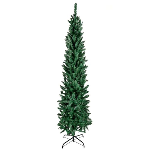 Com seus impressionantes 210cm (2,10 metros) de altura, esta árvore é ideal para quem busca uma presença marcante na decoração, mas precisa de um perfil mais slim (estreito) para se encaixar perfeitamente em espaços menores sem perder o volume e o esplendor.