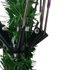 Essa árvore verde é confeccionada com estrutura, galhos e Pés em ferro e as cerdas em PVC. O PVC é muito mais resistente que o plástico, assim como o acabamento que fica excepcional. A montagem e desmontagem, é no sistema guarda chuva (automático) super prático e rápido, sem contar que o sistema é reforçado com anel de sustentação dos galho em metal super reforçado (vide imagem). Uma árvore bem cheia.