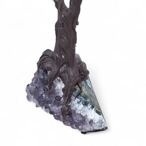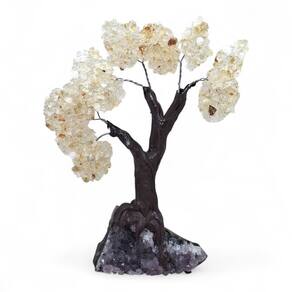 DETALHES DO PRODUTO: Detalhes do Produto: Base em drusa de ametista Tronco e galhos em metal e resina "Folhas" em pedra natural citrino Tamanho aproximado: 17 cm de altura x 15 cm de comprimento