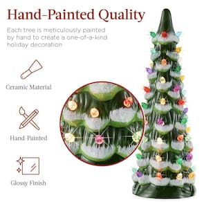 Especificações: 8 polegadas Dimensões da árvore: 3,4" (diâmetro) x 8" (A) Dimensões da árvore de 10 polegadas : 3,5" (diâmetro) x 10" (A) Dimensões da árvore de 12 polegadas: 4" (diâmetro) x 12" (A) Peso total do produto: 2,65 libras. Requisito de bateria: AAA (total de 9 baterias, 3 baterias para cada árvore) Material: cerâmica sem necessidade de montagem O pacote inclui: árvore de cerâmica de 8 polegadas Árvore de cerâmica de 10 polegadas em Árvore de cerâmica somente para uso residencial BCP SKU: SKY8509 - ACABAMENTO PINTADO À MÃO: este conjunto de árvore de Natal em cerâmica é meticulosamente trabalhado, pintado à mão cores e acabamentos brilhantes para criar uma decoração verdadeiramente única - LUZES LED: possui 10 luzes LED alimentadas por bateria e vem com uma coleção de lâmpadas decorativas para alegrar suas férias; número de lâmpadas decorativas (8 pol/10 pol/12 polegadas): 44/58/70 - ALIMENTADO POR BATERIA COM TEMPORIZADOR EMBUTIDO: instale 3 pilhas AAA em cada árvore e ajuste o cronômetro automático (8 horas ligado/16 horas desligado) para desfrutar dessas árvores durante toda a temporada; Nota: as baterias não estão incluídas — ADIÇÃO ELEGANTE: tamanho perfeito para caber em qualquer bancada, mesa, escrivaninha ou lareira; agrupe-as junte árvores ou espalhe-as por sua casa para dar um toque de magia a cada cômodo - EXPANDA SUA COLEÇÃO: construa sua própria floresta natalina ao coletar nossas árvores de cerâmica festivas e altamente presenteáveis para encher sua casa ou escritório com alegria sazonal; DIMENSÕES DA ÁRVORE DE 8 POLEGADAS: 3,4" (diâmetro) x 8" (A); DIMENSÕES DA ÁRVORE DE 10 POLEGADAS: 3,5" (diâmetro) x 10" (A); DIMENSÕES DA ÁRVORE DE 12 POLEGADAS: 4" (Diâmetro) x 12" (H)