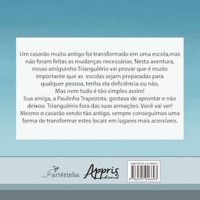 Um casarão muito antigo foi transformado em uma escola,mas não foram feitas as mudanças necessárias. Nesta aventura, nosso amiguinho Triangulério vai provar que é muito importante que as escolas sejam preparadas para qualquer pessoa, tenha ela deficiência ou não. Mas nem tudo é tão simples assim! Sua amiga, a Paulinha Trapezista, gostava de aprontar e não deixou Triangulério fora das suas armações. Você vai ver!Mesmo o casarão sendo tão antigo, sempre conseguimos uma forma de transformar estes locais em lugares mais acessíveis.