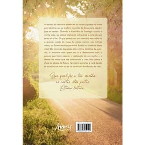 As cartas do caminho podem ser as cartas jogadas na mesa pelo destino, ou, se preferir, as cartas de Deus para alguém que se perdeu. Quando o Caminho de Santiago cruzou a minha vida, eu estava totalmente vulnerável e certa de que seria ali o fim. O que parecia ser um caminho sem volta foi a grande virada de mesa. As cartas caíram nas minhas mãos, ou foram escritas por mim? Ilusão ou mistérios desta vida? Do início da depressão até a última tentativa de suicídio, o encontro com quem sou e o desencontro com a pessoa que tanto esperei, a realização de um sonho e o desejo de morte que me conduziram a uma vida plena e cheia de desejo de futuro. Te mostro as cartas e você decide se acredita em mim ou se vai continuar duvidando da vida. Marca: Não Informado