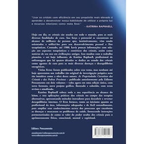 Hoje em dia, os cristais são usados em todo o mundo, para as mais diversas finalidades de cura. Contudo, até 1980, havia poucas informações com relação aos aspectos terapêuticos e esotéricos dos cristais. Isso mudou com o trabalho pioneiro de Katrina Raphaell. As Propriedades Curativas dos Cristais e das Pedras Preciosas – publicado anteriormente pela Editora Pensamento em dois volumes – volta agora em edição única, com novo formato, novo projeto gráfico, ilustrado e colorido, com texto revisto e atualizado. A obra traz aplicações práticas dos cristais no campo das terapias alternativas, apresentando métodos inovadores para descobrir e reverter desequilíbrios internos, além de ampliar seus conhecimentos acerca dos processos que encobrem as doenças e mascaram os problemas de saúde, fornecendo instruções de como se valer do poder oculto dos cristais para o aprimoramento físico, emocional, mental e espiritual
