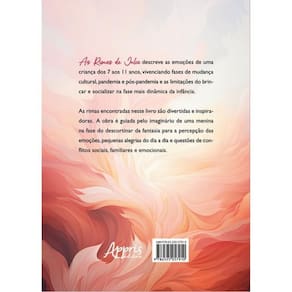 As Rimas de Julia descreve as emoções de uma criança dos 7 aos 11 anos, vivenciando fases de mudança cultural, pandemia e pós-pandemia e as limitações do brincar e socializar na fase mais dinâmica da infância. As rimas encontradas neste livro são divertidas e inspiradoras. A obra é guiada pelo imaginário de uma menina na fase do descortinar da fantasia para a percepção das emoções, pequenas alegrias do dia a dia e questões de conflitos sociais, familiares e emocionais. Marca: ARTERA EDITORA