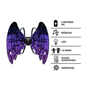 Asas Fantasia para Festas com Led e Música Vampiro Roxo