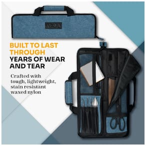 ARTESANATO ESPECIALIZADO Os rolos de facas Asaya são meticulosamente projetados para criar os estojos de viagem perfeitos para suas facas e equipamentos de chef. Feitos à mão com nylon resistente, leve e resistente a manchas, eles são construídos para durar muitos anos de uso e desgaste da cozinha. Queremos que nossos Chefs sejam configurados com o melhor equipamento possível que os dure por toda a vida. ESPAÇOSO E ESPAÇOSO Com 12 slots de faca no total e bolsos com zíper, este estojo de faca profissional pode transportar facilmente um conjunto completo de facas de chef e utensílios de cozinha. LEVE E PORTÁTIL Por si só, o estojo pesa apenas 1 kg. mas pode facilmente conter mais de 6 kg. vale a pena equipamento de cozinha. Este estojo de faca foi cuidadosamente projetado para ser perfeito para o chef viajante. Pode ser transportado pela alça ou é pequeno o suficiente para caber dentro de uma bolsa maior Marca: Não Informado