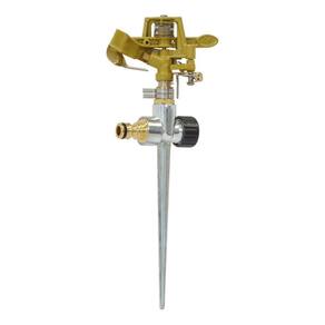 Este aspersor de impulso setorial e ideal para a irrigacao eficiente de areas superiores a 100 m2. Fabricado em metal resistente na cor cinza, possui uma altura de 32,00 cm e e projetado para uso em superficies. O angulo de inclinacao de 360deg permite uma cobertura completa do terreno, maximizando a eficacia da irrigacao. Atencao: o alcance da irrigacao pode variar conforme a pressao da agua, sendo mais ampla com maior pressao. O produto acompanha um aspersor e oferece de 24 meses. Ideal para manter seu jardim ou gramado sempre saudavel e bem cuidado. Marca: Não Informado