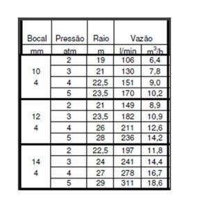 Pressão: 2 a 5 mca