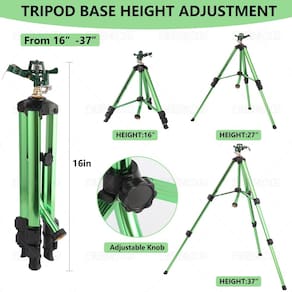 - Ajustável e fácil de usar: as pernas extensíveis do tripé (38 a 101 cm) com clipes de travamento seguros permitem ajustes de altura personalizáveis. Um anel de vedação de filtro de borracha integrado evita entupimento de detritos, enquanto o conector ergonômico da mangueira de pescoço de ganso garante uma fixação sem complicações a mangueiras de jardim padrão de 1,9 cm.