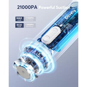 Dovety Aspirador de carro portátil, sem fio, sucção potente 21000PA, mini aspirador de pó 5 em 1 com luz LED, aspirador portátil de carro de até 40 minutos de duração para carro, casa, animal de estimação, escritório - ?Aspirador de carro multifuncional 5 em 1 sem fio?O mini aspirador de pó portátil sem fio Dovety combina cinco funções - aspirar, soprar, inflar, bombear e iluminação LED. Equipado com vários bicos, ele lida com várias tarefas sem esforço, desde limpar assentos de carro, porta-malas, pelos de animais de estimação e sofás até lacunas difíceis de alcançar. Também pode inflar bolas de ioga, colchões de ar, etc. - ?Aspirador de carro sem escova com sucção elétrica 21000PA? Com um motor sem escovas de alta velocidade atualizado, ele oferece até 21000PA de potência de sucção, removendo efetivamente pelos de animais, migalhas, poeira e detritos persistentes. O aspirador de carro tem dois modos de sucção (13000PA e 21000PA) para atender a diferentes necessidades de limpeza, deixando seu carro impecável. - ?Sem fio ultraleve e fácil de usar? Pesando apenas 340 g, este mini aspirador de pó é mais leve do que uma garrafa de água. Seu design sem fio permite a operação com uma mão, alcançando todos os cantos do seu carro com facilidade. Uma bolsa de armazenamento está incluída para maior portabilidade e organização. - ?Longo tempo de execução e carregamento rápido tipo C? Este aspirador portátil sem fio pode ser utilizado por até 40 minutos de tempo de execução em baixa velocidade. Recarrega totalmente em apenas 2,5 horas através do cabo tipo C incluído, compatível com laptops, portas USB do carro, carregadores portáteis e muito mais. Observação: use um carregador 5V2A; 5V1A não é suportado. - ?Filtro HEPA de metal e fácil limpeza? O filtro HEPA de metal a vácuo de carro Dovety lavável é feito de fibras de metal finas multicamadas para desempenho eficiente e duradouro. O copo de poeira abre facilmente com uma simples torção, mantendo suas mãos limpas durante o descarte. - ?Presente perfeito para qualquer ocasião?O aspirador de pó Dovety é ideal para entusiastas de carros, famílias e entes queridos. O aspirador portátil para carro é versátil para uso em carros, casas ou escritórios. Seja para o Natal, Ação de Graças, aniversários ou Dia dos Namorados, é um presente atencioso e prático para qualquer pessoa. - Observação: este aspirador portátil para carro não substitui os aspiradores tradicionais grandes e não foi projetado para limpar grandes áreas. É mais adequado para limpeza detalhada dentro de carros, pequenos espaços internos, bem como desktops, torres de computador e teclados.