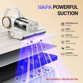 - ?Limpeza profunda de alta eficiência?Nosso aspirador de pó UV para colchão possui um potente motor de 500 W, oferecendo 16 kPa de forte sucção e batida de alta frequência de 30.000 RPM. Ele penetra profundamente em colchões e camadas de tecido, removendo efetivamente poeira fina, flocos de pele. Mantenha seu colchão e sofá sempre frescos e limpos, criando um ambiente de sono mais saudável e permitindo que você desfrute de uma vida doméstica mais saudável. (Observação: não é adequado para absorver pelos de animais de estimação)