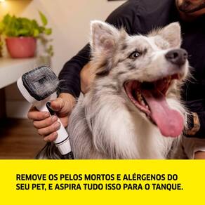 Equipamento 3 em 1 que tosa, escova e aspira os pelos simultaneamente. Possui 3 níveis de potência e baixo ruído (65 dB)., Equipamento 3 em 1 que tosa, escova e aspira os pelos simultaneamente. Possui 3 níveis de potência e baixo ruído (65 dB).Tipo de coletor