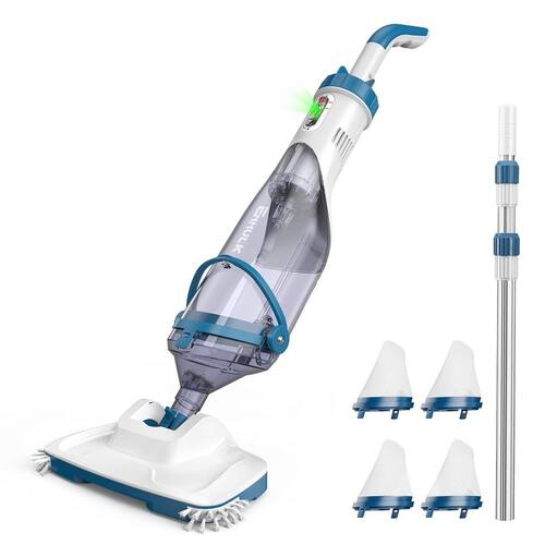 - ?Com haste telescópica de 2,22 cm?Este aspirador de piscina recarregável vem com uma alça curta e um mastro telescópico. Você pode trabalhar de uma maneira mais apropriada. O mastro telescópico se estende de 91 cm a 222 cm, facilitando a limpeza até mesmo nas áreas mais difíceis de alcançar
