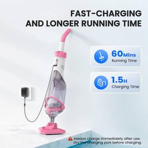 - [CARREGAMENTO RÁPIDO E DE LONGA DURAÇÃO] Aspirador de piscina recarregável sem fio com bateria recarregável de 5 x 2000mAh, pode funcionar por até 60 minutos; oferece flexibilidade suficiente para limpar profundamente toda a piscina. Com a principal tecnologia de carregamento rápido, ele recarrega totalmente em apenas 1,5 horas