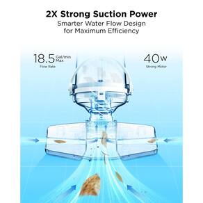 - [Sucção poderosa e visível] Com um design exclusivo de fluxo de água, este aspirador de piscina sem fio oferece sucção forte e precisa. A cabeça de sucção transparente fornece visibilidade em tempo real, facilitando a localização de manchas sem passar pelo mesmo local duas vezes.
