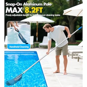 - Poste secional flexível de encaixe: o poste seccional do nosso aspirador de piscina permite que você o monte em segundos e ajuste o comprimento livremente de acordo com suas necessidades de limpeza. Se você estiver limpando áreas rasas ou profundas de sua piscina, ela fará um trabalho perfeito. O design robusto de encaixe garante estabilidade sem oscilações, enquanto a desmontagem sem ferramentas permite que seja armazenado de forma compacta em um armário ou garagem. Gaste menos tempo configurando e mais tempo aproveitando sua piscina cintilante!