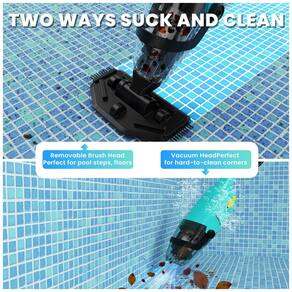 Este aspirador de piscina portátil é ideal para limpeza de piscinas acima do solo, spas e banheiras de hidromassagem. Com um motor forte, ele possui uma sucção poderosa capaz de capturar uma variedade de detritos, incluindo areia e pequenas pedras. A bateria de 6000mAH dura cerca de 60 minutos, proporcionando tempo suficiente para limpar toda a piscina. O aspirador vem com um poste telescópico que tem o comprimento mais curto de 85 cm ao mais longo de 175 cm, perfeito para limpar spas e banheiras de hidromassagem. Para piscinas acima do solo, você pode conectar a um poste padrão de comprimento adequado não incluído. A operação é fácil e sem ferramentas, basta conectar a unidade ao mastro da piscina incluído, ligar a unidade e você estará pronto para aspirar como faz no chão. É importante lembrar que a luz indicadora deve estar submersa para funcionar corretamente, caso contrário, irá parar de funcionar após os 60 anos. Livre se do irritante cabo ou mangueira e aproveite a limpeza da sua piscina com facilidade.