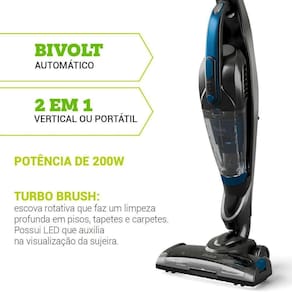 - Aspirador 2 em 1: vertical e portátil sem fio