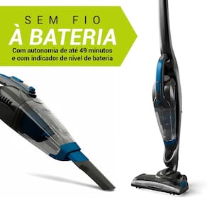 Com bateria de lítio e carregamento bivolt automático, você tem até 49 minutos de uso contínuo. A luz de LED no acessório de pisos ilumina áreas escuras, enquanto o indicador de bateria ajuda a planejar a limpeza sem interrupções.