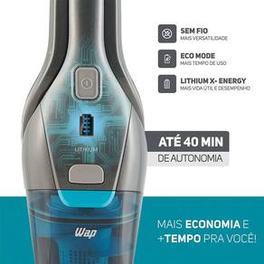 Tecnologia na Limpeza! O Aspirador de Pó 2 em 1 WAP Eco Rápido redefine a experiência de limpeza doméstica, que combina eficiência e tecnologia em um único aparelho. A tecnologia de bateria Lithium X-Energy oferece uma vida útil mais longa e um desempenho constante, permitindo sessões de limpeza prolongadas sem interrupções.