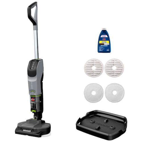 Seguro para uso em madeira selada, azulejo, linóleo, laminado e vinil, o limpador sem fio BISSELL SpinWave Vac oferece três modos de limpeza dinâmica modo de vácuo seco ciclônico, modo de esfregão úmido giratório motorizado ou modo de aspirador e esfregão de dupla ação. Com sucção ciclônica, pads de mop giratórios, design layflat e limpeza de 90 bordas, este limpador é a escolha ideal para quem busca praticidade e eficiência na limpeza de pisos duros.
