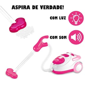 Aspirador De Pó Brinquedo Infantil Aspira De Verdade com Luz As crianças adoram brincar de casinha Pensando em transformar essa brincadeira em algo mais divertido e real, apresentamos como novidade o Aspirador de Pó que funciona de verdade. Com design moderno e exclusivo, o Aspirador de Pó Eletrônico veio para entreter e tornar a brincadeira faz de conta mais divertida e interativa. O brinquedo possui luzes e acompanha bolinhas de isopor - Com luz - Possui alça - Aspira de verdade - Visual exclusivo e divertido como brincar: - Espalhe as bolinhas que acompanham o produto numa superfície e aperte o botão liga/desliga para começar a aspirar - aspirou retire as bolinhas abrindo a tampa do reservatório. Entre nessa diversão e aspire toda a casa. Afinal, com esse exclusivo Aspirador de Pó, sua brincadeira faz de conta ficará muito mais interativa e atrativa habilidades A desenvolver: - Auxilia na coordenação motora - Incentiva a criatividade e imaginação OBS: Ele aspira de verdade - Idade Recomendada: + 3 anos - Material: Plástico pp, ps e abs - Utiliza 3 Pilhas aa (não inclusas) - Comprimento do Cano: 65cm (aprox) - Medidas do Aspirador: 20cm (comp) x 12cm (alt) x 14cm (larg). - Certificado Inmetro: CE-BRI/OCP0019 Contém: - 1 Aspirador de Pó