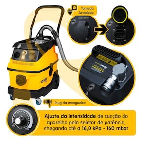 Aspirador de pó profissional com 1600W de potência, ideal para uso diário ou profissional. Possui função de sucção e sopro, filtro HEPA de alta eficiência, sistema START/STOP para automação com ferramentas pneumáticas, e capacidade de aspirar sólidos e líquidos. Conta com saco coletor de 30L, sistema de filtragem em 3 etapas, rodas para mobilidade e tubo telescópico ajustável.Tipo de coletor