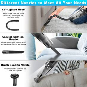 - Acessórios profissionais para resolver mais problemas de limpeza: os aspiradores portáteis sem fio vêm com 3 acessórios diferentes para melhor atender às suas necessidades. Tubo de fenda para aberturas e cantos estreitos. Bocal de escova Para cabelos em tapetes e sofás. O tubo longo e macio se estende até onde você quiser. Aspirador portátil com filtro HEPA durável removível, lavável e reutilizável.