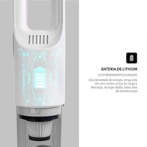 Sem necessidade de fios e preocupações com tomadas elétricas, este aspirador a bateria apresenta uma bateria de lithium de alto desempenho e durabilidade.