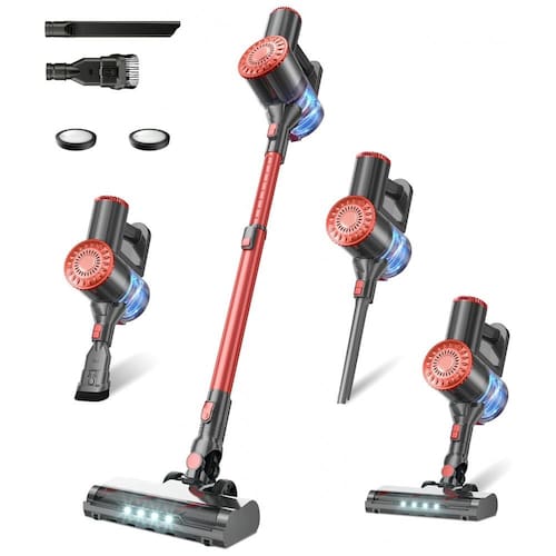 Equipado com um motor de alta velocidade de sucção de 40KPA, este aspirador de pó sem fio proporciona uma excelente potência de sucção. Ideal para azulejos, pisos duros e carpetes, ele remove sujeira, detritos e pelos de animais de várias superfícies. O motor potente autodirigido ajuda a limpar a casa rapidamente, melhorando a eficiência da limpeza. Com um design autoportante, o aspirador oferece uma conveniência incomparável. Com suas mãos livres, você pode lidar com outras tarefas enquanto ele fica em pé com firmeza, em qualquer lugar. Com uma escova em forma de S antienrosco, evita que cabelos e detritos se enrosquem, garantindo uma limpeza suave e ininterrupta. Leve e equilibrado, é fácil de transportar e usar em toda a sua casa. Seu design ergonômico permite limpar áreas elevadas sem esforço, sendo perfeito para operação com uma mão. Além disso, vem com três bocais substituíveis para diferentes necessidades de limpeza. Com tanta praticidade, a limpeza se torna uma tarefa simples e eficiente.
