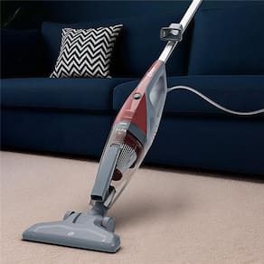 Aspirador de pó vertical 2 em 1, com 600W de potência e sucção de 17 kPa.Tipo de coletor